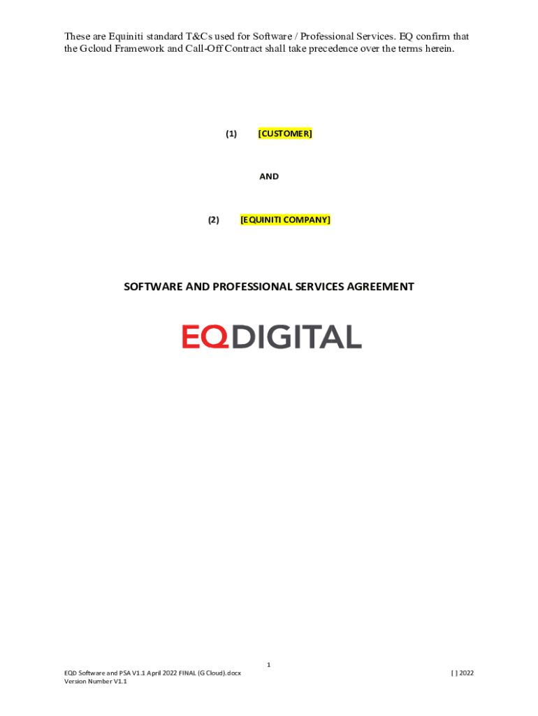 These are Equiniti standard T&Cs used for Software / Professional Services. EQ confirm that the Gcloud Framework and CallOff Contract shall take precedence over the terms herein.(1)[CUSTOMER]AND(2)[EQUINITI