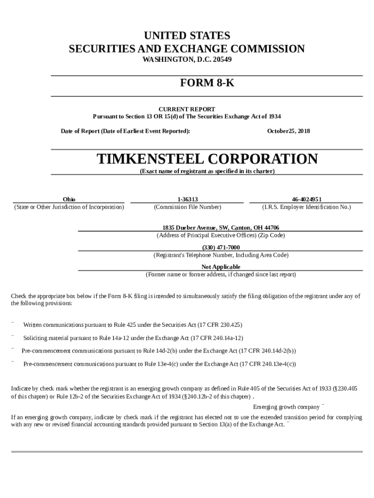 Template On October 25, 2018 , TimkenSteel Corporation (the Company) issued a press release announcing results for the third quarter of 2018 instructions