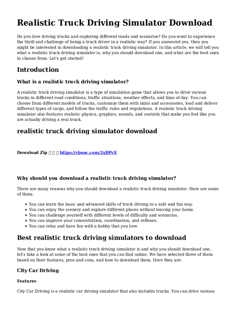 Realistic Truck Driving Simulator Download Do you love driving trucks and exploring different roads and scenarios? Do you want to experience the thrill and challenge of being a truck driver in a realistic