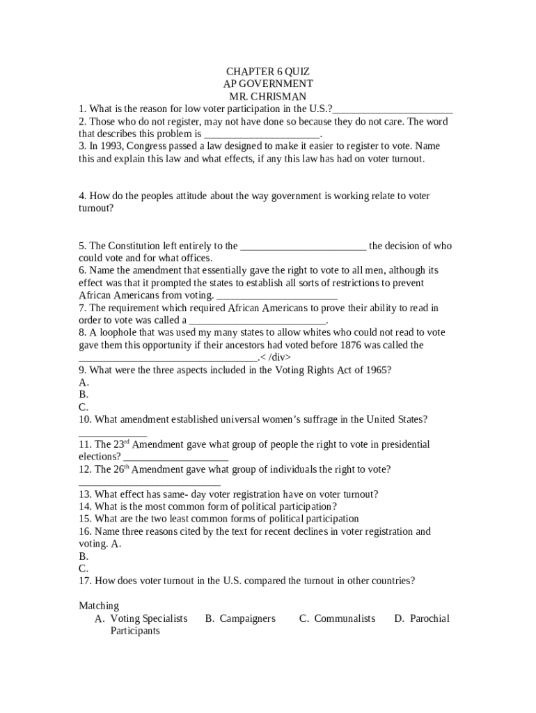 AP Gov Chapter 6 - Political Participation Flashcards: frequently asked questions