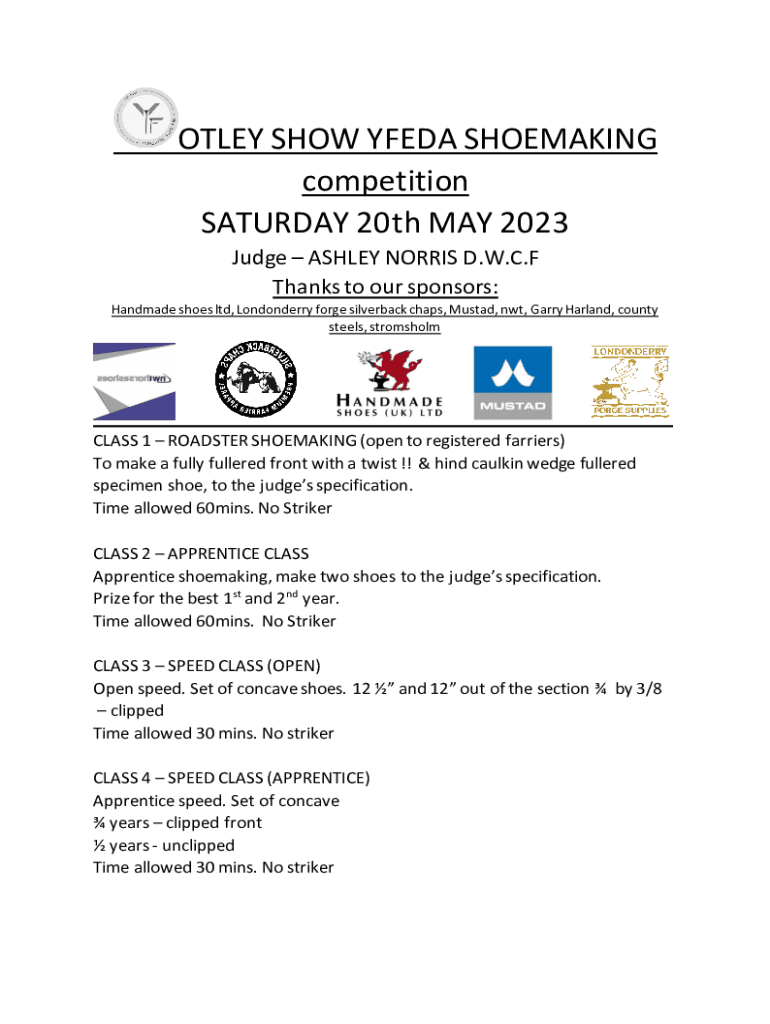 Get the free OTLEY SHOW YFEDA SHOEMAKING competition SATURDAY ...