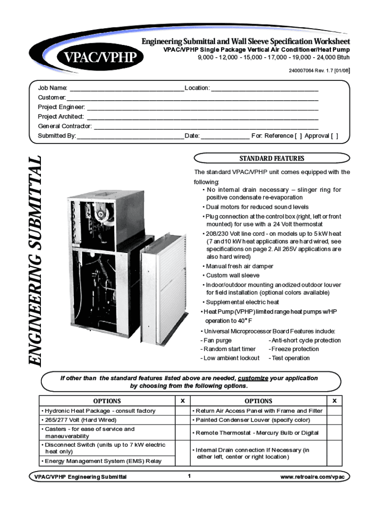 Engineering Submittal and Wall Sleeve Specification Worksheet
