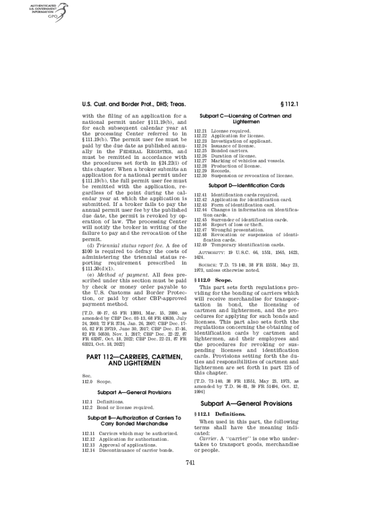 Get the free Elimination of Customs Broker District Permit Fee