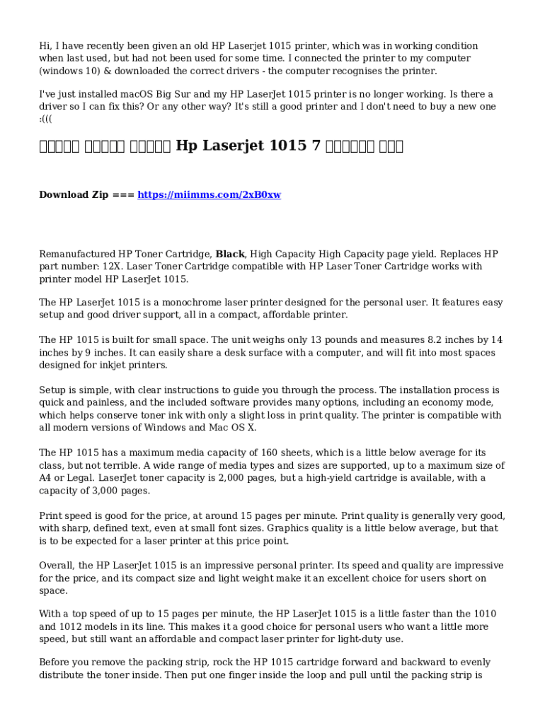 Hi, I have recently been given an old HP Laser jet 1015 printer, which was in working condition