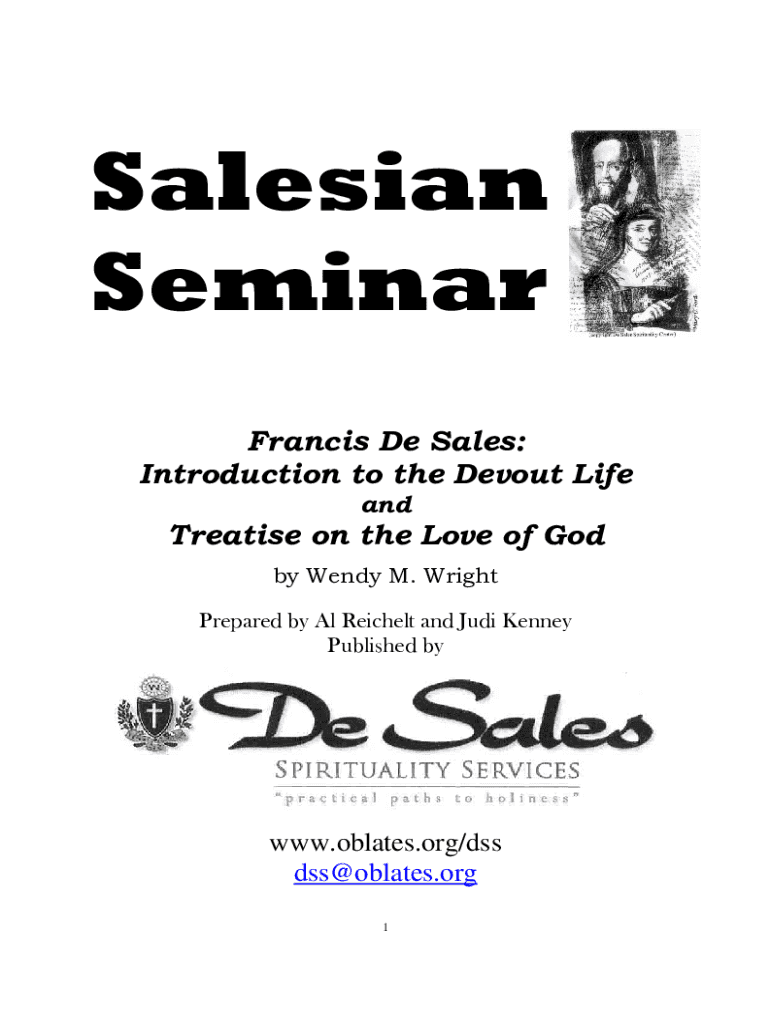 Salesian Seminar Francis De Sales: Introduction to the Devout Life andTreatise on the Love of God by Wendy M. Wright Prepared by Al Reichelt and Judi Kenney Published bywww.oblates.org/dss dss@oblates.org