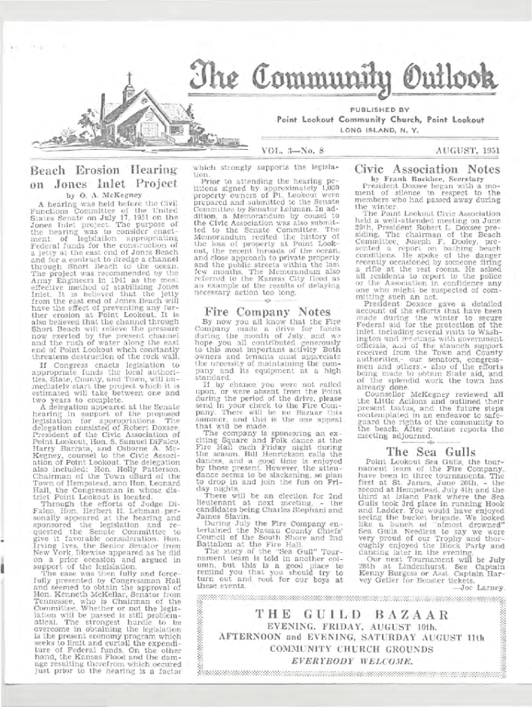 PUBLISHED BYPoin t lookout Com munity Church, Point Lookout LONG ISLAND, N. V.\'01,.Beach Erosion Hearing on Jones Inlet Proj ectIby 0, . . \'lcKegney A hearing\' was held befote the Civil Functions