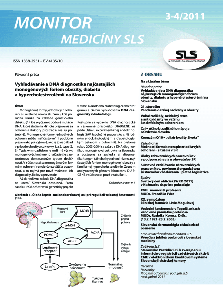 MONITOR34/2011MEDICNY SLSISSN 13382551 EV 4135/10Z OBSAHUPvodn prcaNa aktulnu tmuVyhadvanie a DNA diagnostika najastejch monognovch foriem obezity, diabetu ahypercholesterolmi na Slovensku vod Monognov