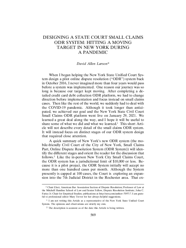 Get the free New York State Unified Court System's Small Claims ODR ...