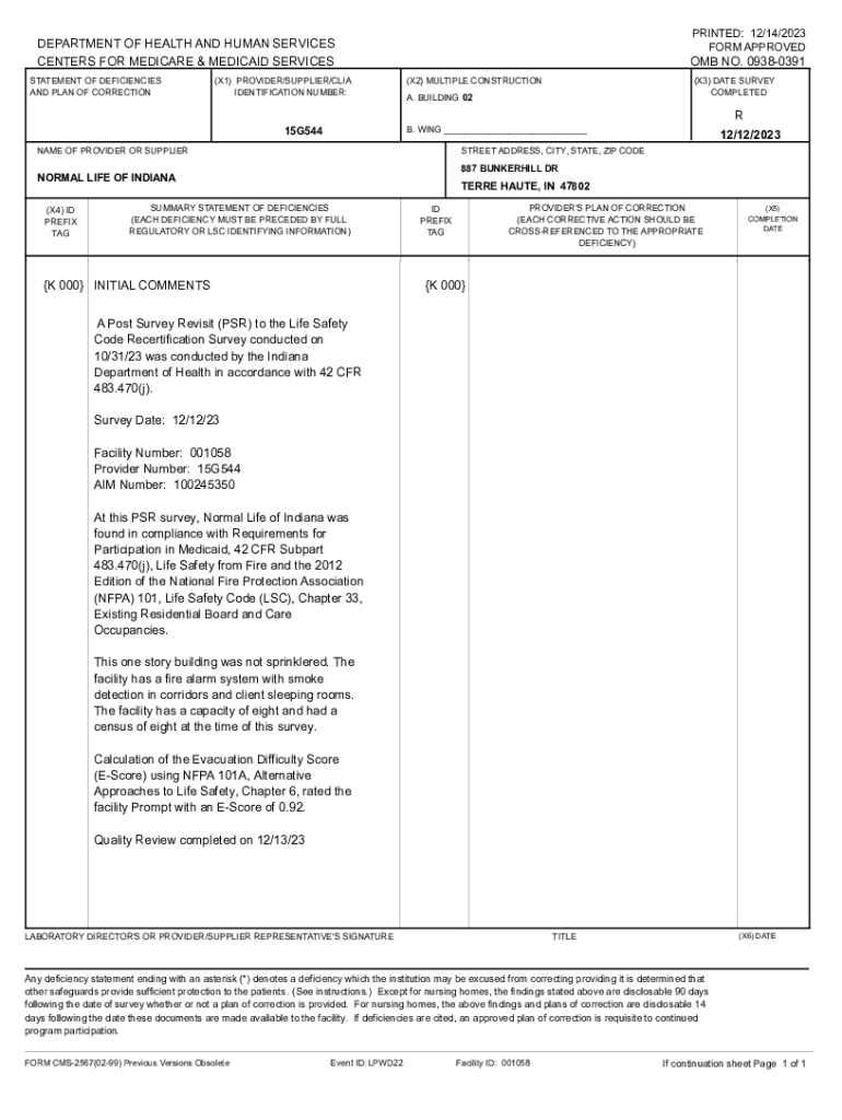 PRINTED: 12/14/2023 FORM APPROVEDDEPARTMENT OF HEALTH AND HUMAN SERVICES CENTERS FOR MEDICARE & MEDICAID SERVICES STATEMENT OF DEFICIENCIES AND PLAN OF CORRECTION(X1) PROVIDER/SUPPLIER/CLIA IDENTIFICATION