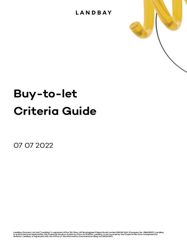 Buytolet Criteria Guide 07 07 2022Landbay Partners Limited (Landbay), registered office 7th Floor, 60 Buckingham Palace Road, London SW1W 0AH (Company No. 08668507). Landbay is authorised and regulated