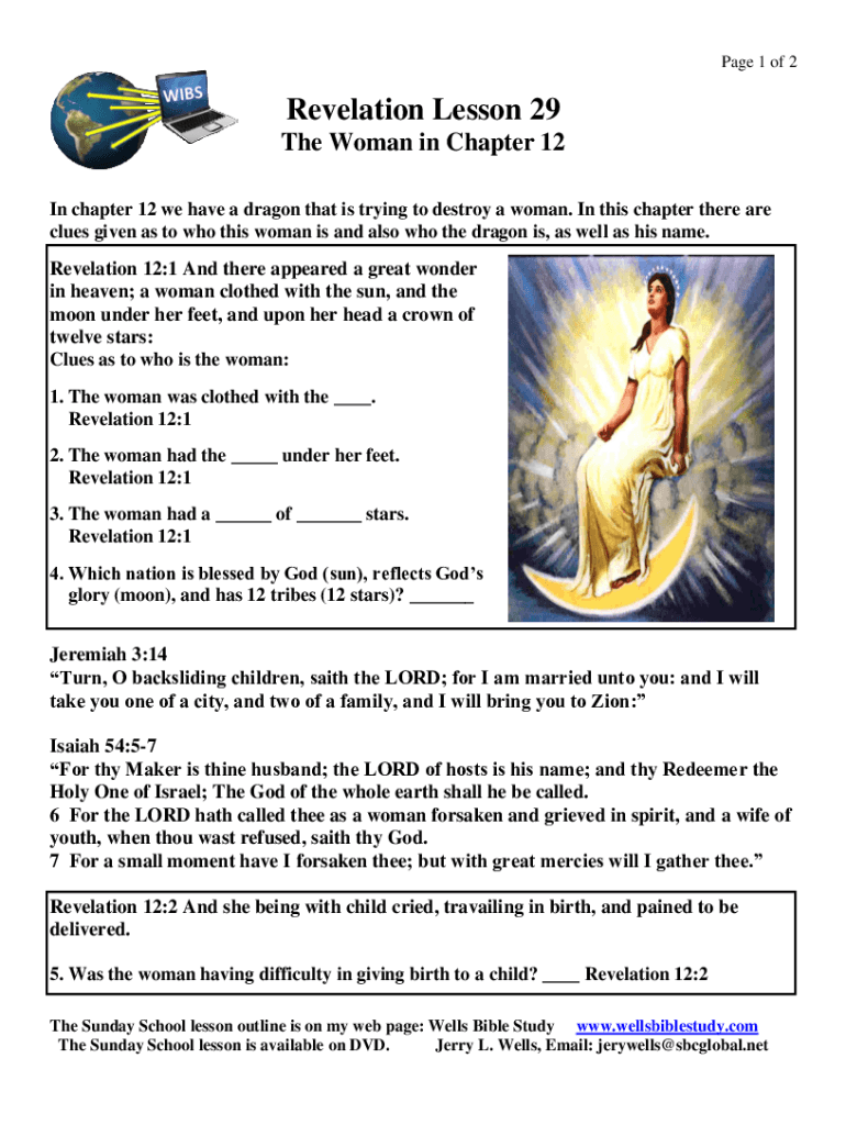 Page 1 of 2Revelation Lesson 29 The Woman in Chapter 12 In chapter 12 we have a dragon that is trying to destroy a woman. In this chapter there are clues given as to who this woman is and also who