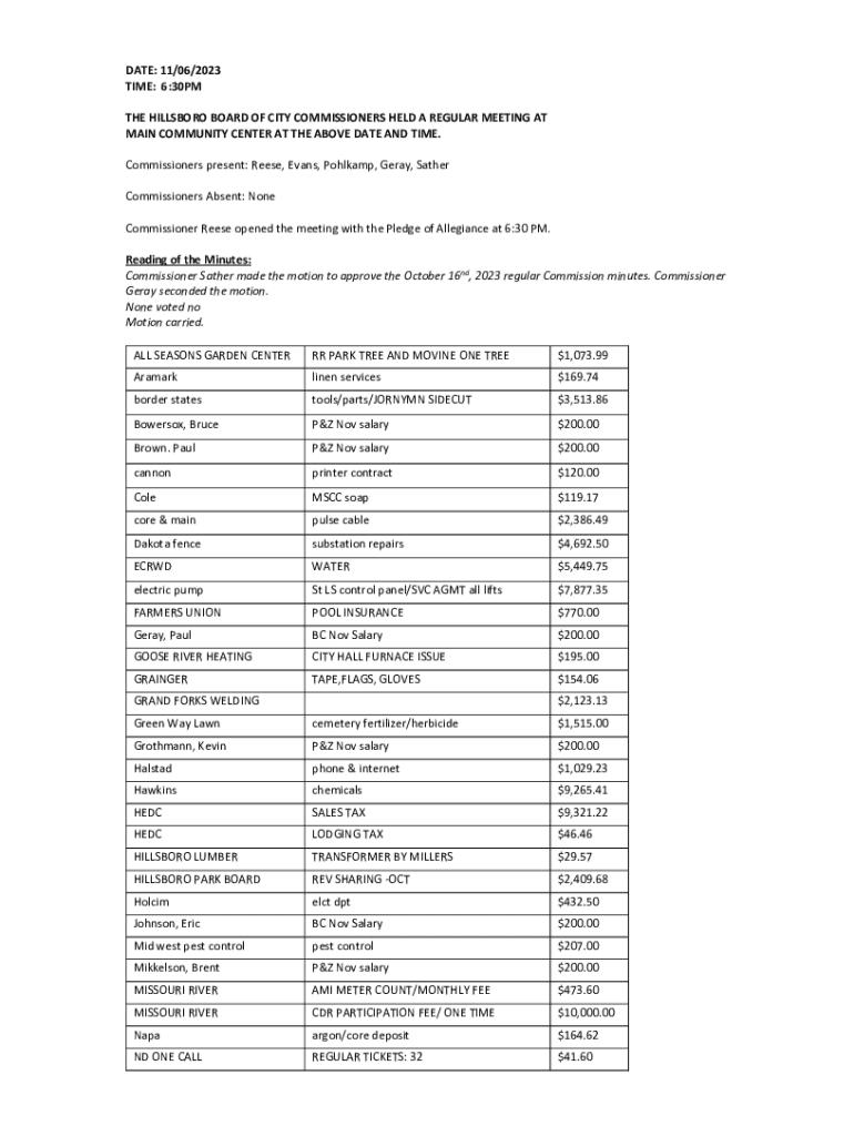 THE HILLSBORO BOARD OF CITY COMMISSIONERS HELD A REGULAR MEETING AT