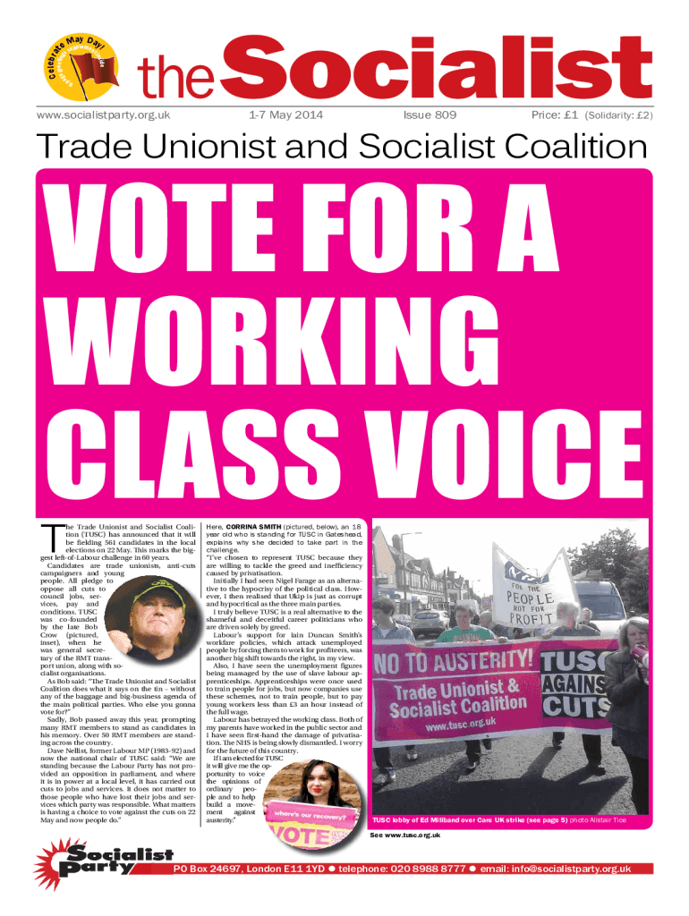 sup the Socialist8pwww.socialist party.org.uk17 May 2014Issue 809Price: 1 (Solidarity: 2)Trade Unionist and Socialist Coalitionist for a