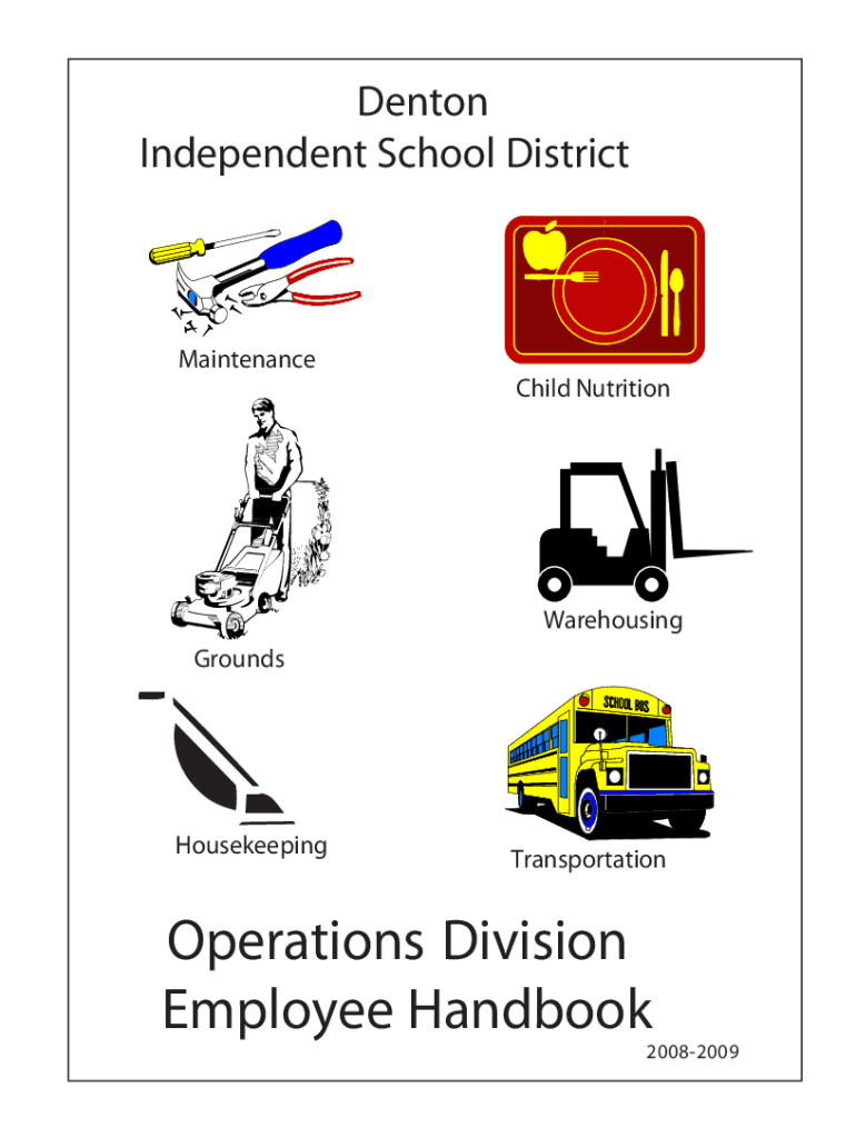 Denton Independent School DistrictMaintenance Child NutritionWarehousing GroundsHousekeepingTransportationOperations Division Employee Handbook 200820091The Denton Independent School District does