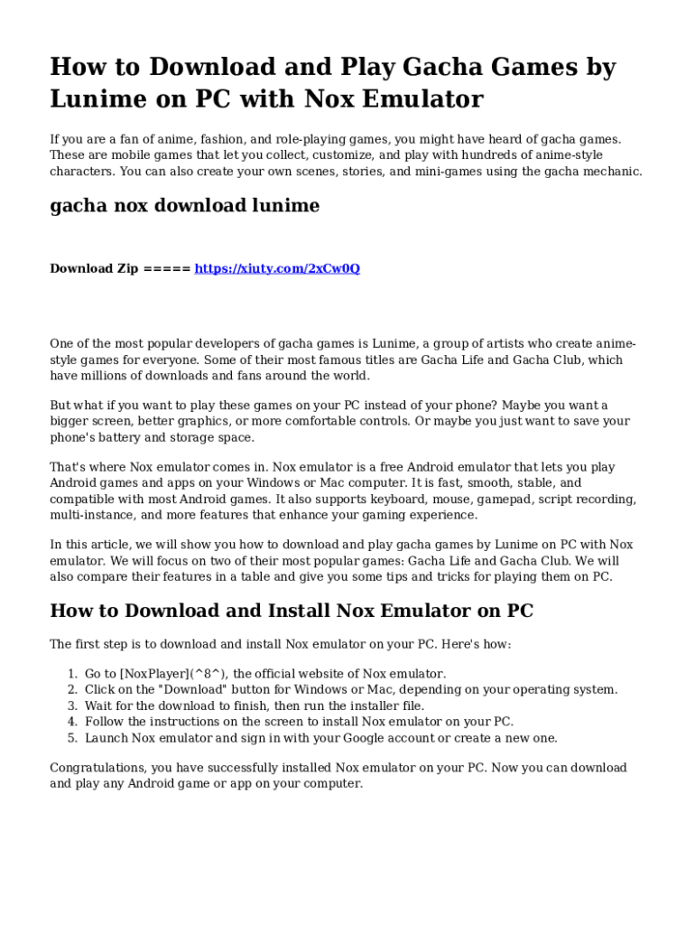 How to Download and Play Gacha Games by Lunime on PC with Nox Emulator If you are a fan of anime, fashion, and roleplaying games, you might have heard of gacha games. These are mobile games that let