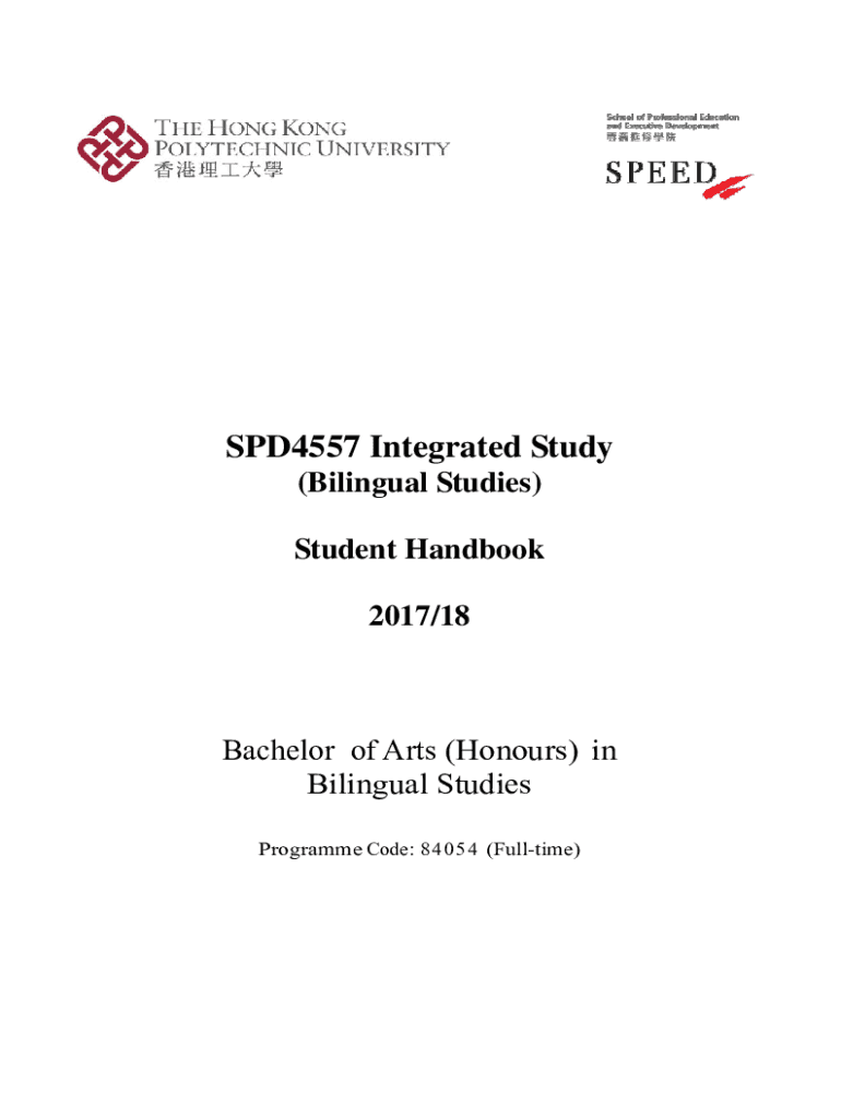 SPD4557 Integrated Study (Bilingual Studies) Student Handbook 2017/18Bachelor of Arts (Honours) in Bilingual Studies Programme Code: 84054 (Fulltime)Table of ContentsPage 1.Introduction12.Topic, Approach,