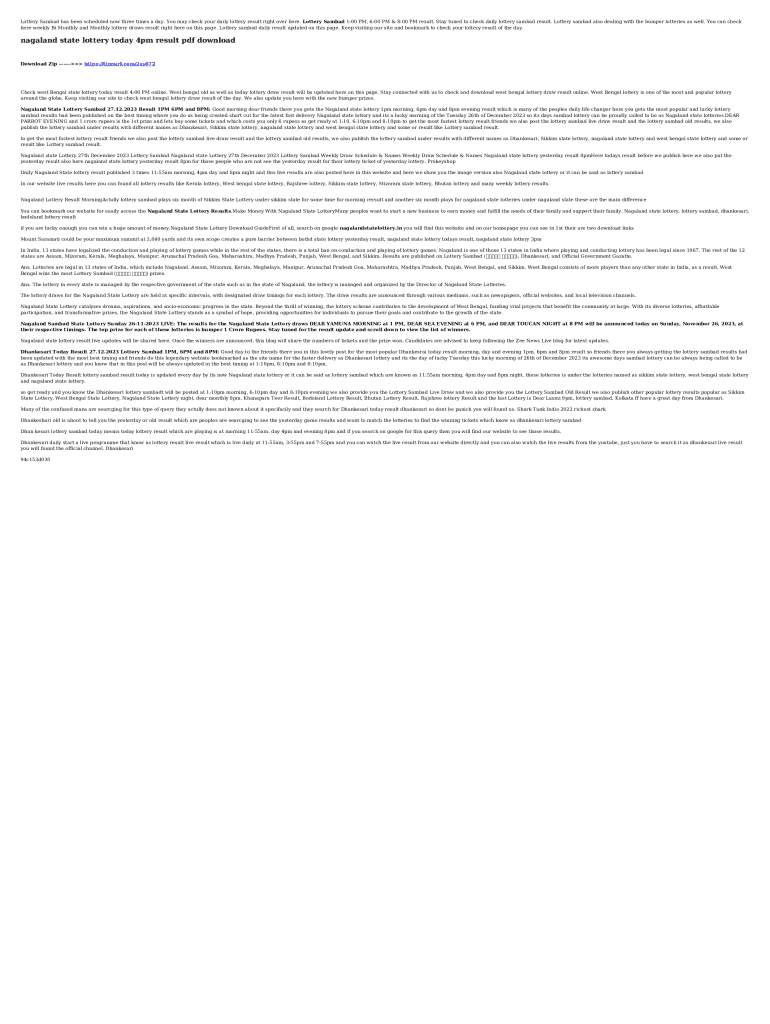 Lottery Sambad Today Nagaland is not the form you're looking for?Search for another form here.