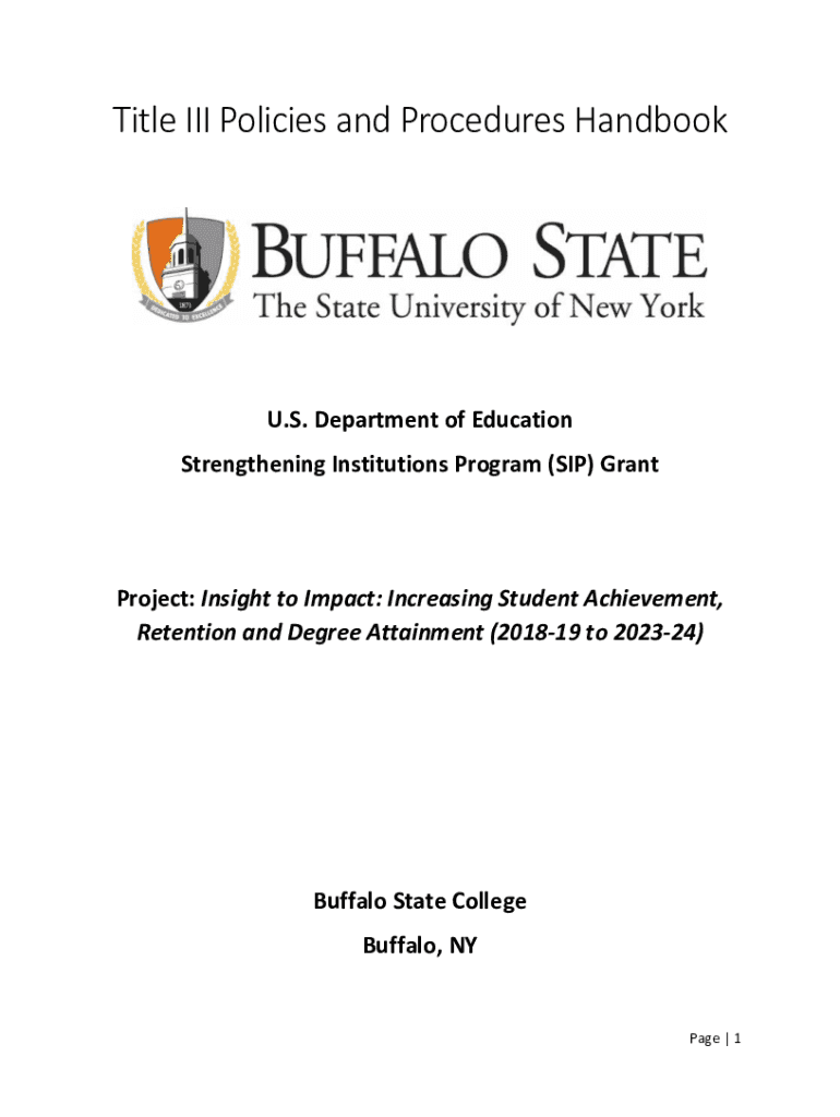 Title III Policies and Procedures HandbookU.S. Department of Education Strengthening Institutions Program (SIP) GrantProject: Insight to Impact: Increasing Student Achievement, Retention and Degree