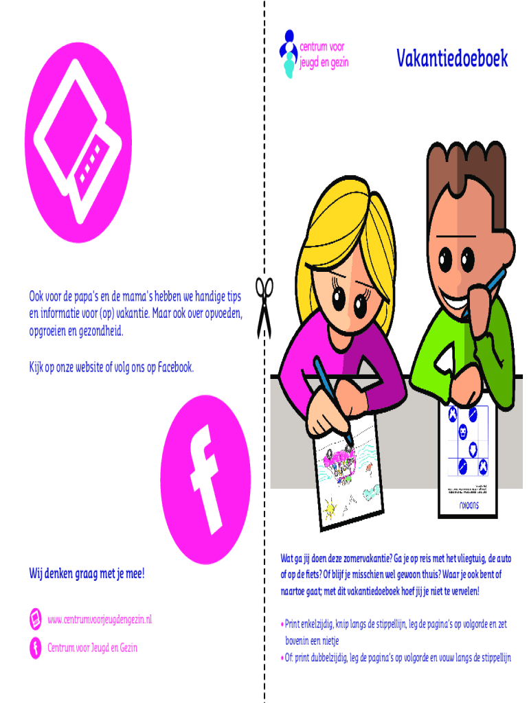 VakantiedoeboekOok voor de papa\'s en de mama\'s hebben we handige tips en informatie voor (op) vakantie. Maar ook over opvoeden, opgroeien en gezondheid. Kijk op onze website of volg ons op Facebook.Wij