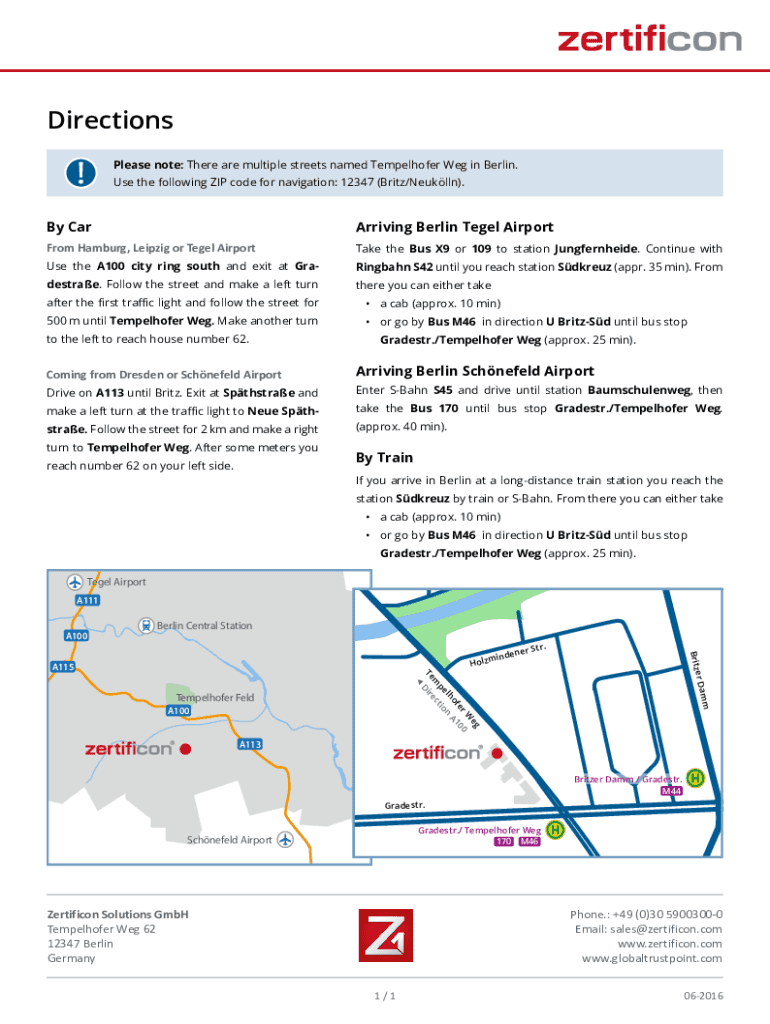 Use the following ZIP code for navigation: 12347 (Fritz/Neural). By Arriving Berlin Hegel AirportFrom Hamburg, Leipzig