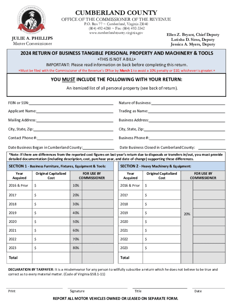 Get the free 2024 Return of Business Tangible Personal Property and Machinery ... - cumberlandcou...