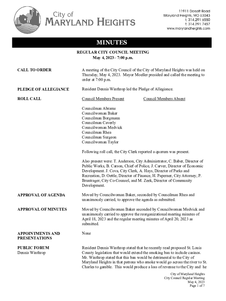 Thursday, May 4, 2023. Mayor Mueller presided and called