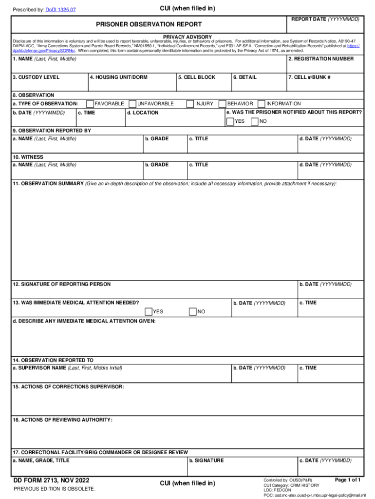 Get the free DD Form 2713, "Prisoner Observation Report"