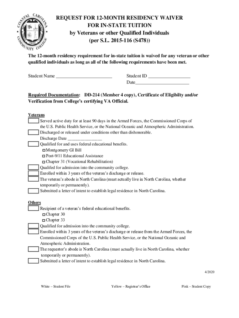 The request for in-state tuition for veterans is a formal application process that allows veterans to obtain in-state tuition rates at public colleges and universities, regardless of their state of residency.