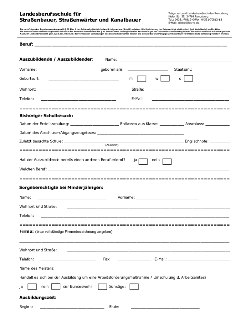 So füllen Sie landesberufsschule fr straenbauer straenwrter aus