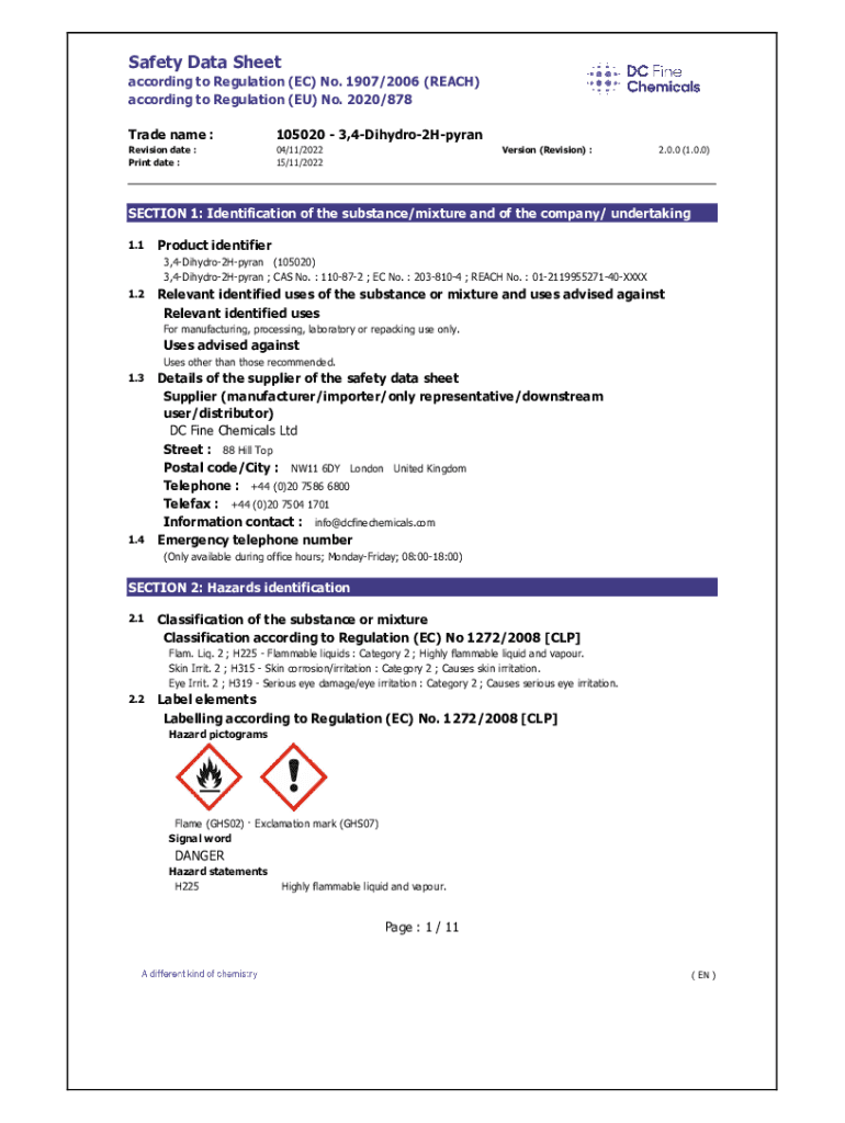 Trade name :105020 3,4Dihydro2HpyranRevision date :