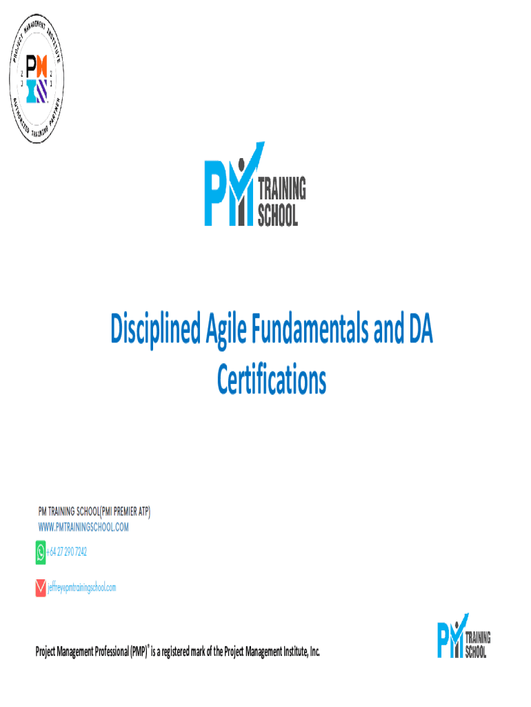 Disciplined Agile Fundamentals and DA CertificationsProject Management Professional (PMP) is a registered mark of the Project Management Institute, Inc.Agenda1. Agile fundamentals2. Why Disciplined