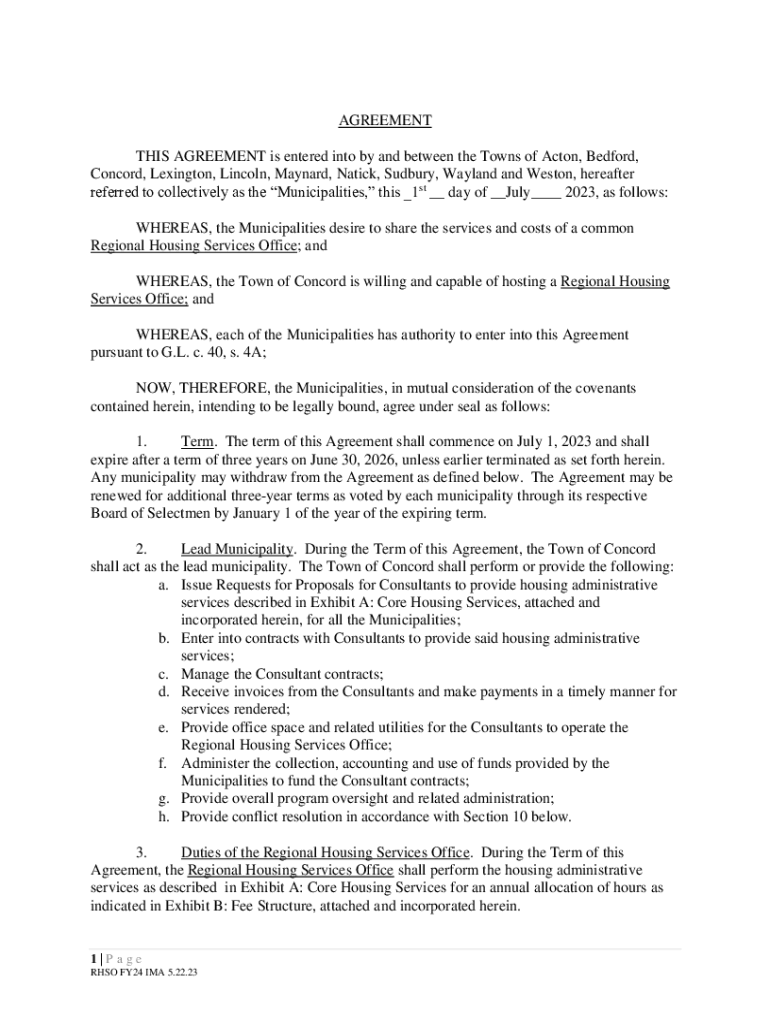 Get the free AGREEMENT - BETWEEN THE TOWN OF ACTON