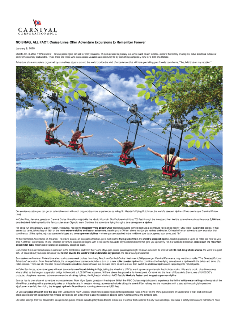 MIAMI, Jan. 8, 2020 /PRNewswire/ Cruise passengers set sail for many reasons. They may want to journey