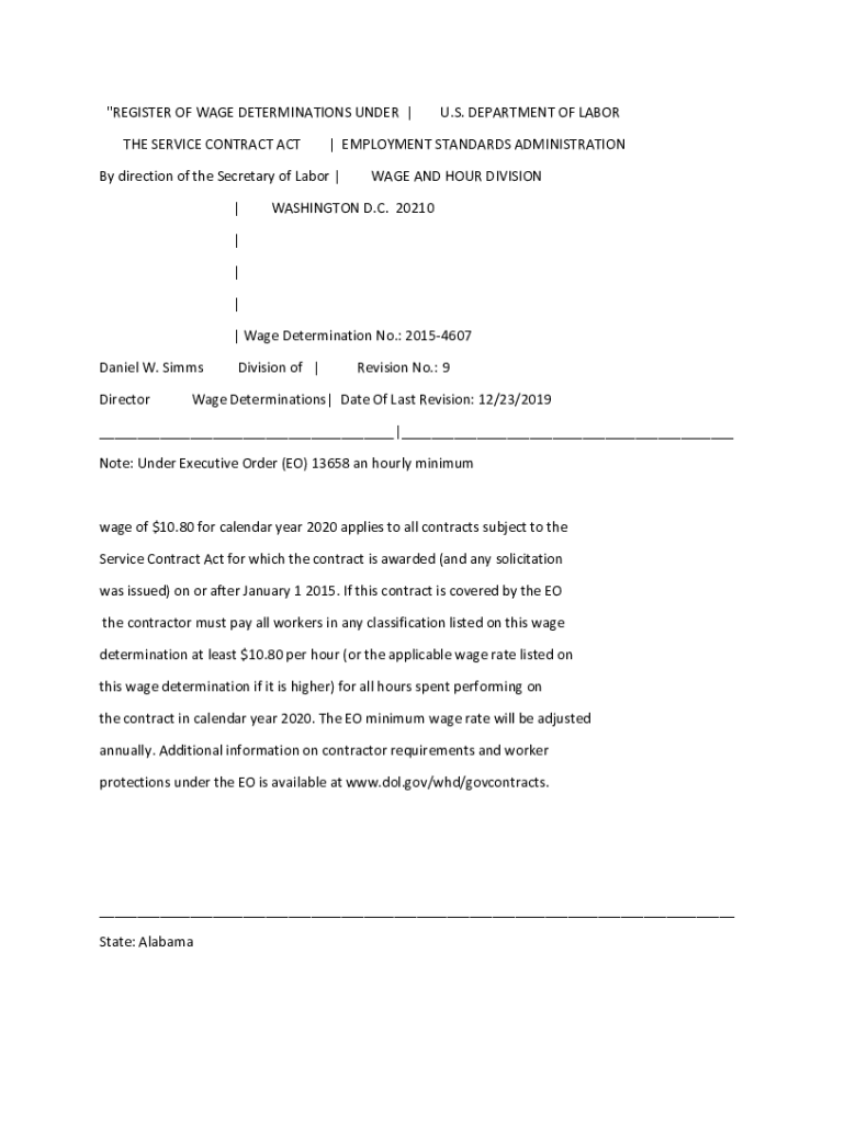 \"REGISTER OF WAGE DETERMINATIONS UNDER | THE SERVICE CONTRACT ACT| EMPLOYMENT STANDARDS ADMINISTRATIONBy direction of the Secretary of Labor | |U.S. DEPARTMENT OF LABORWAGE AND HOUR DIVISIONWASHINGTON