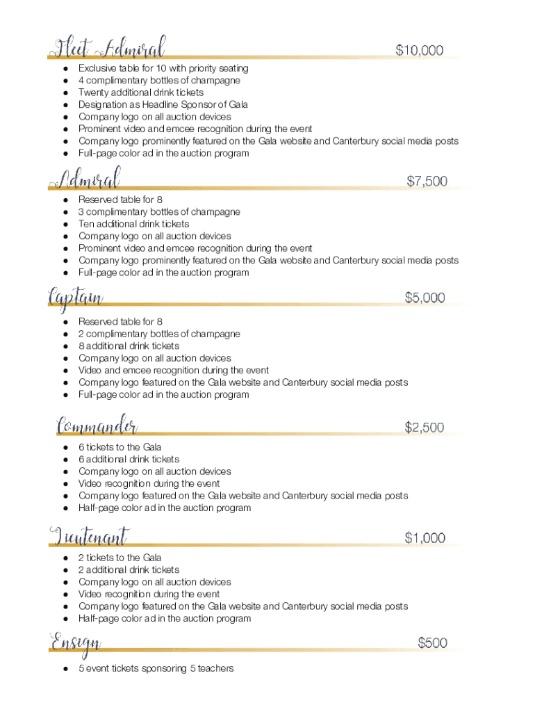 Designation as Headline Sponsor of Gala