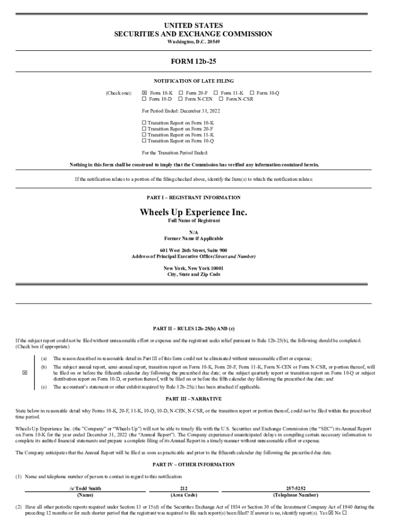 Get the free Notification of Late Filing on Form 12b-25
