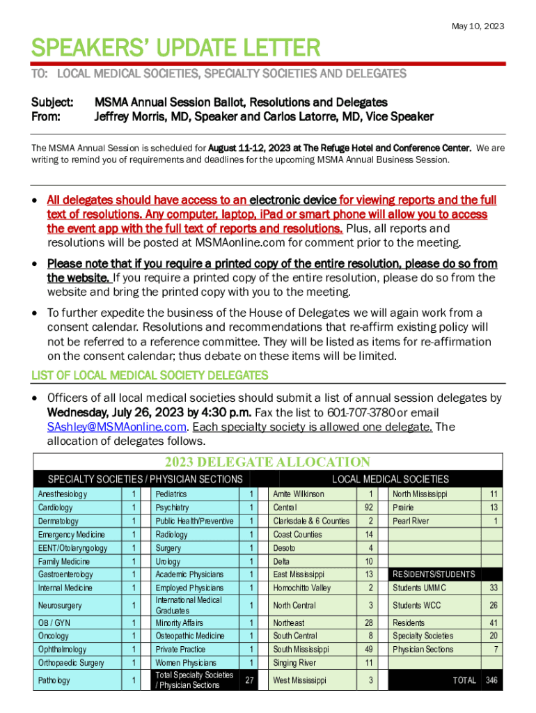 From:MAMA Annual Session Ballot, Resolutions and Delegates