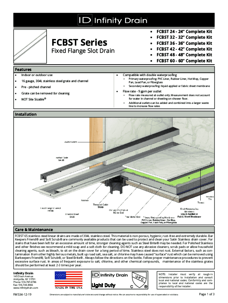 FC BST SeriesFixed Flange Slot DrainFCBST 24 24 Complete Kit