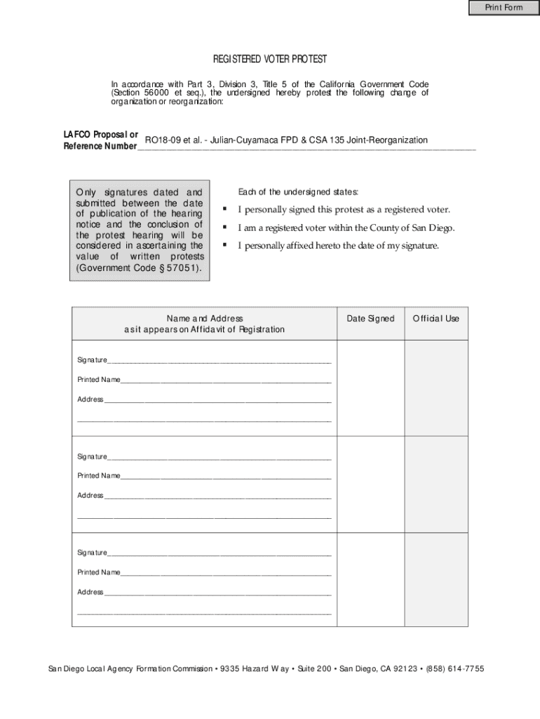 Registered Voter Protest Form is not the form you're looking for?Search for another form here.