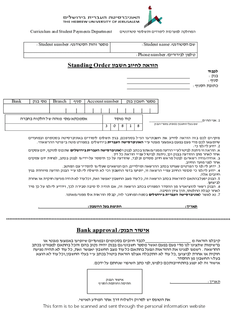 Curriculum and Student Payments Department :Student number / :Student name / :Phone number / Standing Order : : :
