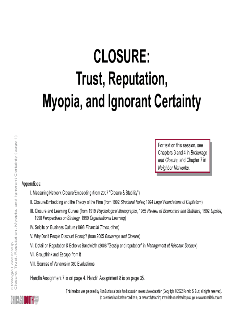Closure: Trust, Reputation, Myopia, and Ignorant Certainty (page 1)CLOSURE:
