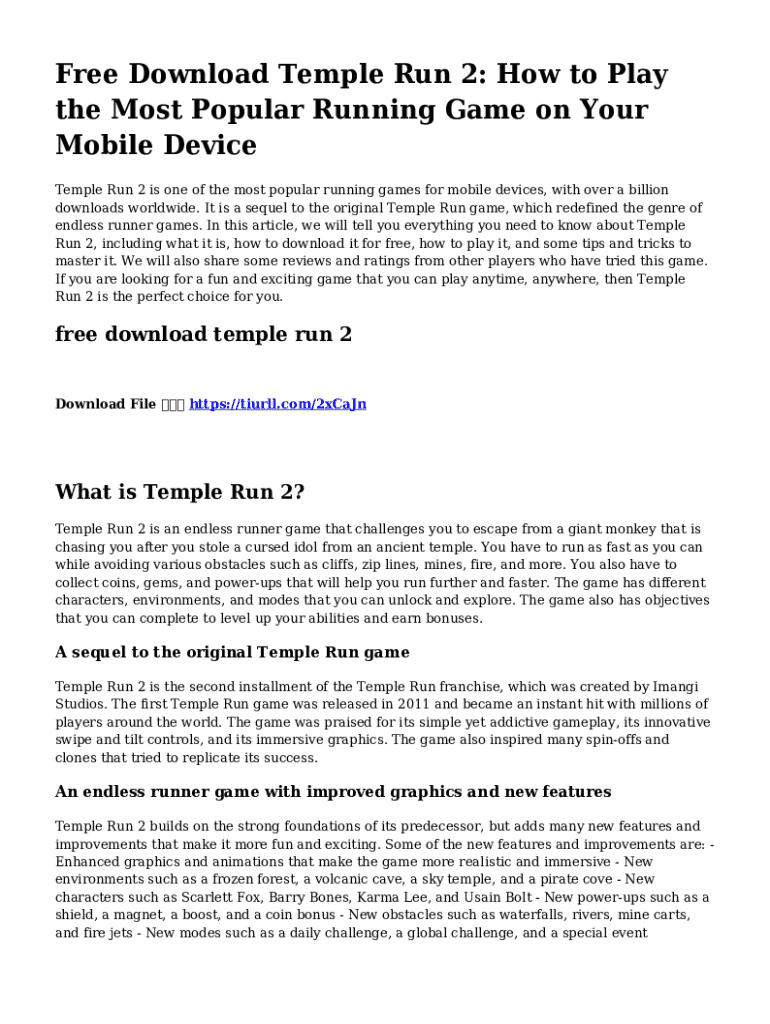 Temple Run 2 is one of the most popular running games for mobile devices, with over a billion