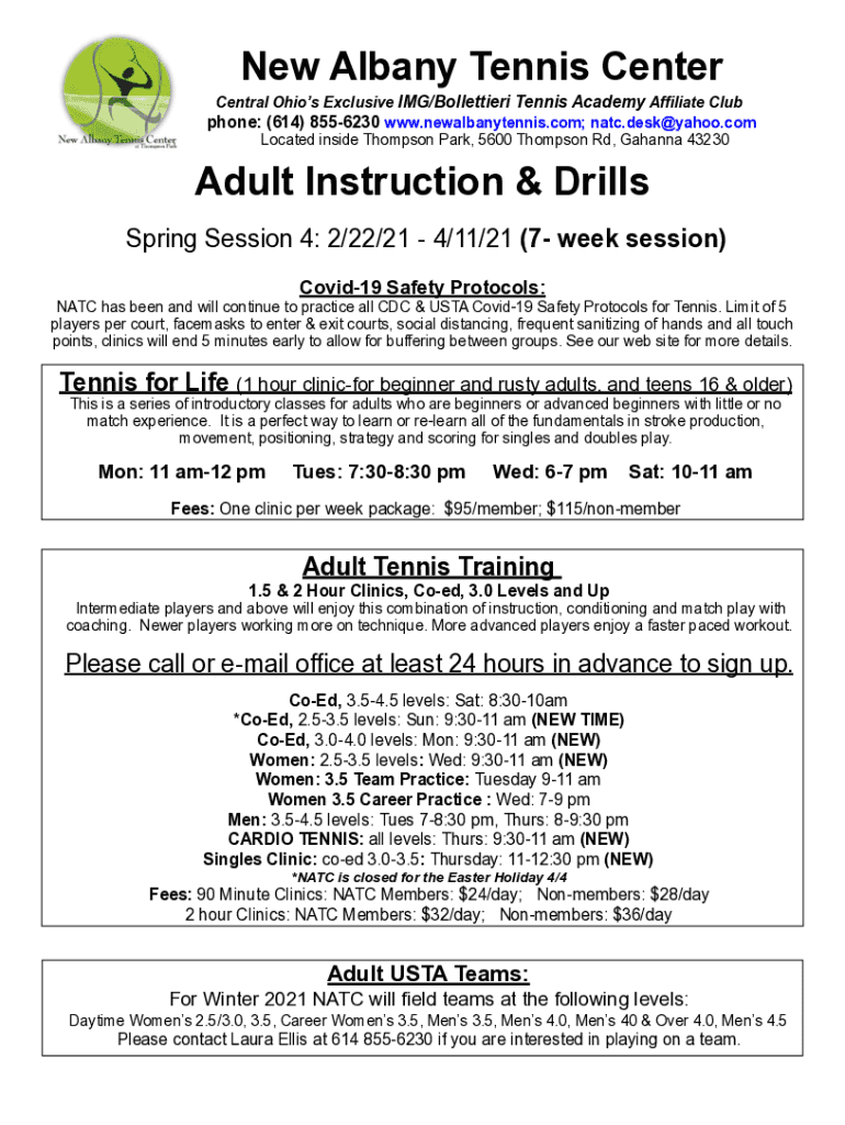 New Albany Tennis Center Central Ohios Exclusive IMG/Bollettieri Tennis Academy Affiliate Club phone: (614) 8556230 www.newalbanytennis.com; natc.desk@yahoo.com Located inside Thompson Park, 5600