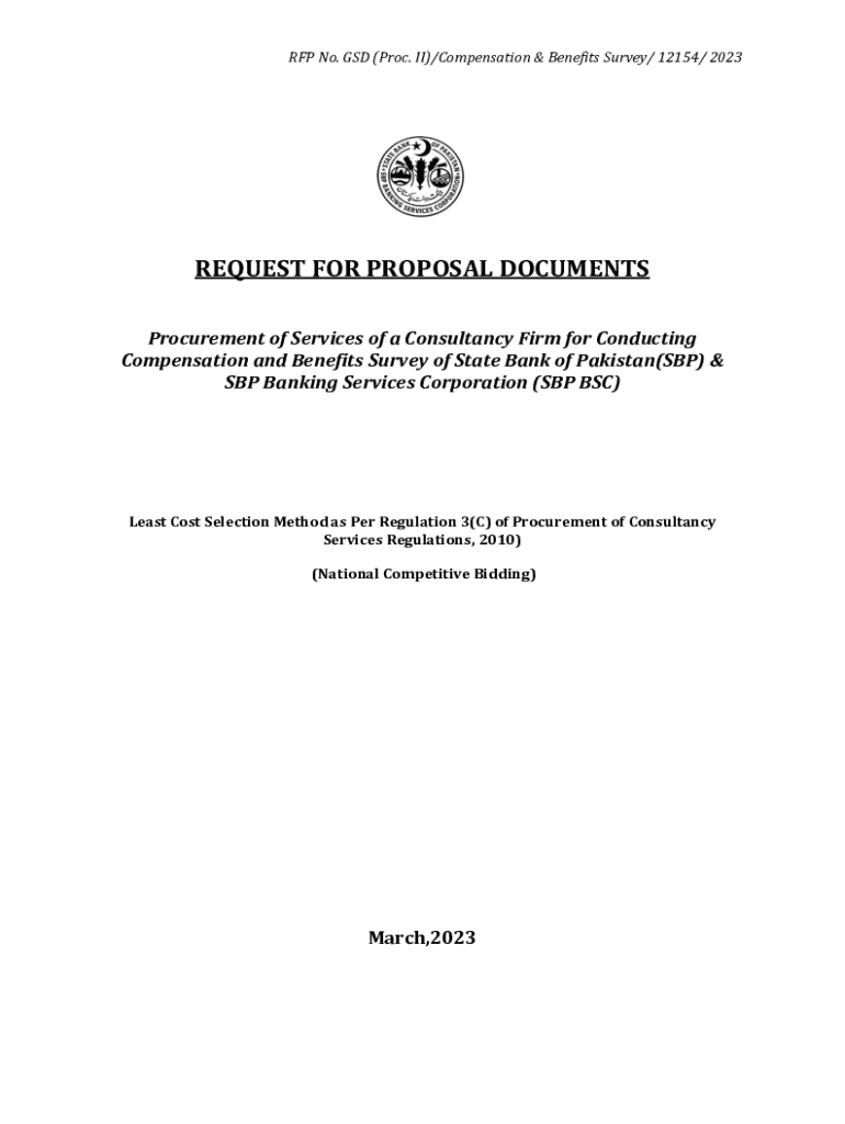 RFP No. GOD (Pro. II)/Compensation & Benefits Survey/ 12154/ 2023REQUEST FOR PROPOSAL DOCUMENTS