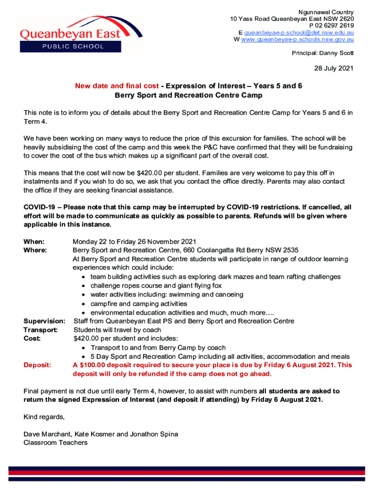 Ngunnawal Country 10 Yass Road Queanbeyan East NSW 2620 P 02 6297 2619 E queanbeyaep.school@det.nsw.edu.au W www.queanbeyaep.schools.nsw.gov.au Principal: Danny Scott28 July 2021New date and final