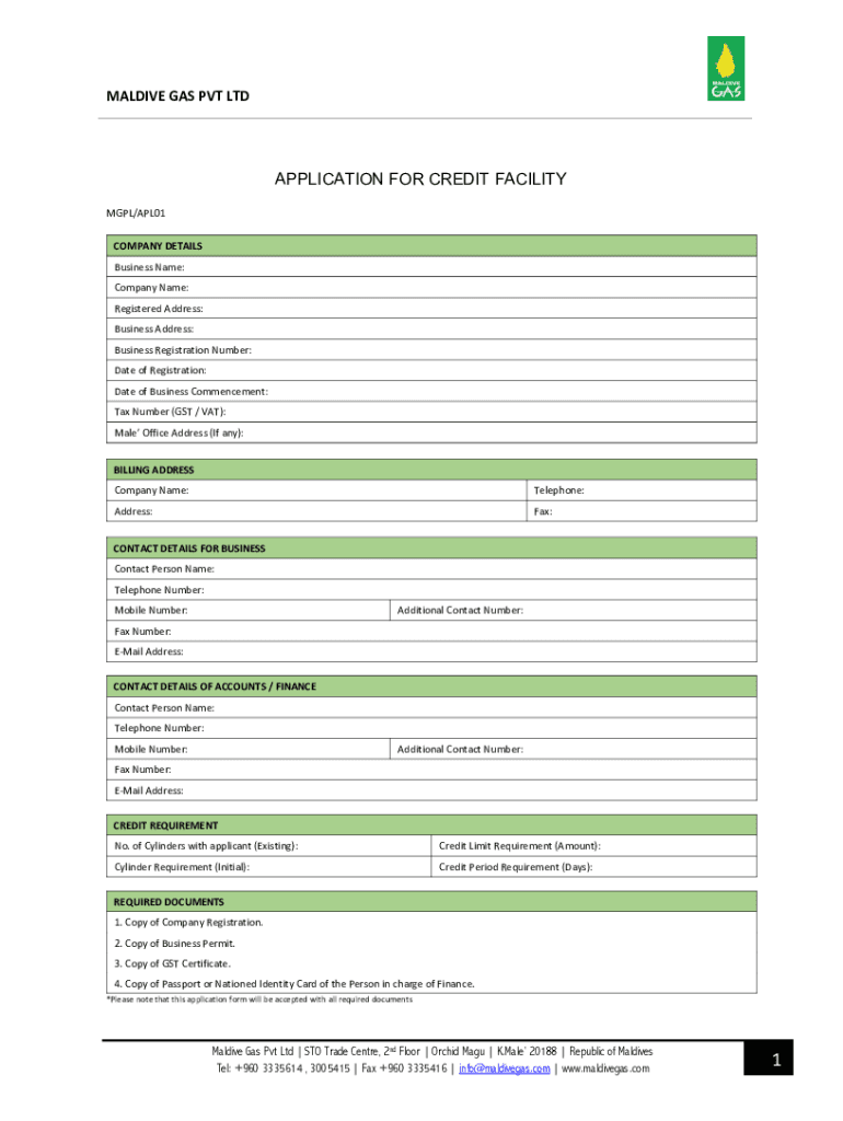 MALDIVE GAS PVT APPLICATION FOR CREDIT FACILITY