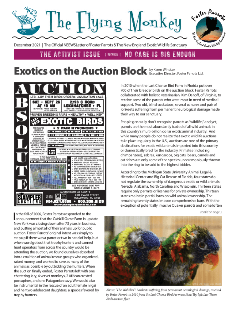 December 2021 | The Official NEEWSLetter of Foster Parrots & The New England Exotic Wildlife SanctuaryTHE AC TIVIS T ISSUE|BECAUSE|NO CAGE IS BIG ENOUGHExotics on the Auction Block LTB LUV THEM BIRDS