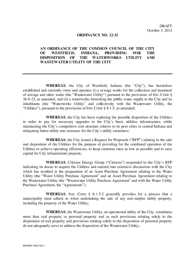 DISPOSITION OF THE WATERWORKS UTILITY AND