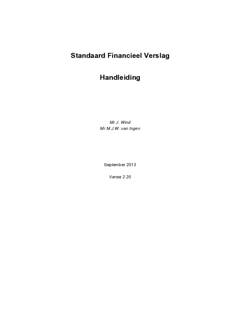 Standaard Financieel Verslag HandleidingMr J. Wind Mr M.J.W. van IngenSeptember 2013 Versie 2.20Handleiding SFV 2.20Voorwoord bij versie 2.07 Het Standaard Financieel Verslag (SFV) waartoe deze handleiding