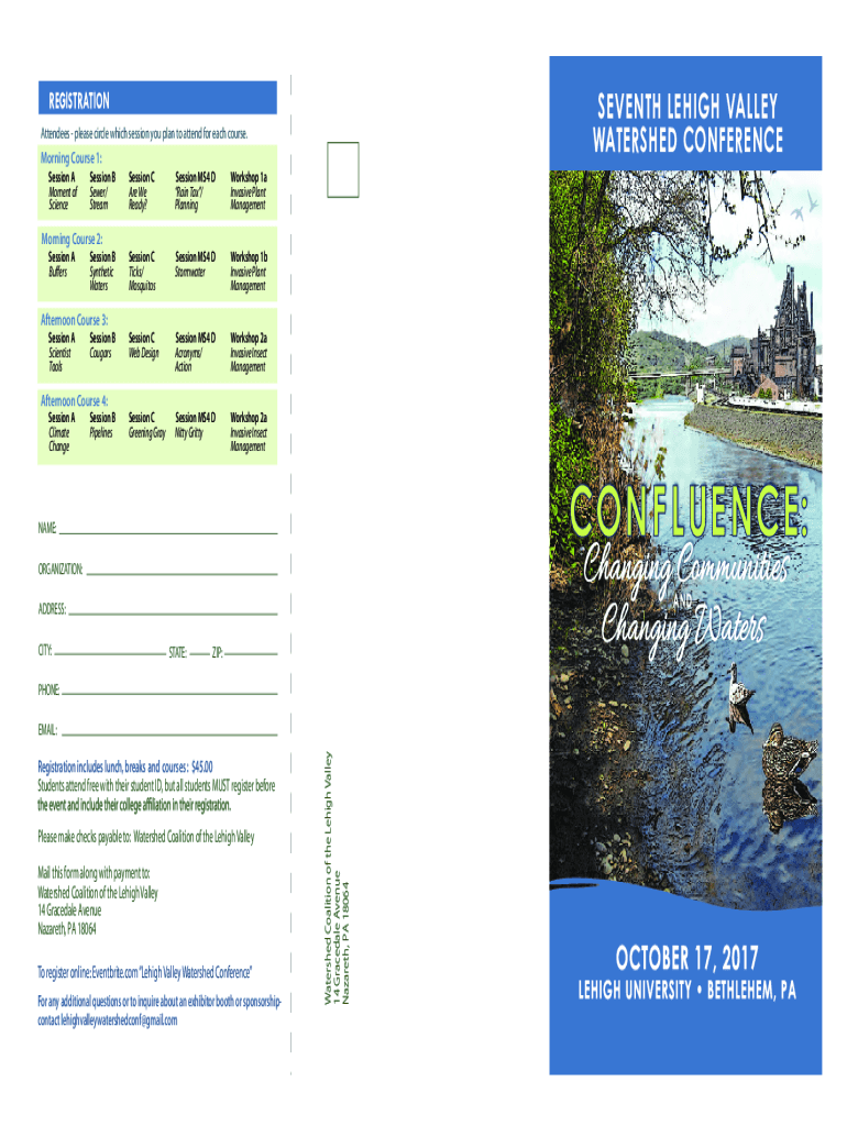SEVENTH LEHIGH VALLEY WATERSHED CONFERENCEREGISTRATION Attendees please circle which session you plan to attend for each course.Morning Course 1: Session A Moment of ScienceSession B Sewer/ StreamMorning